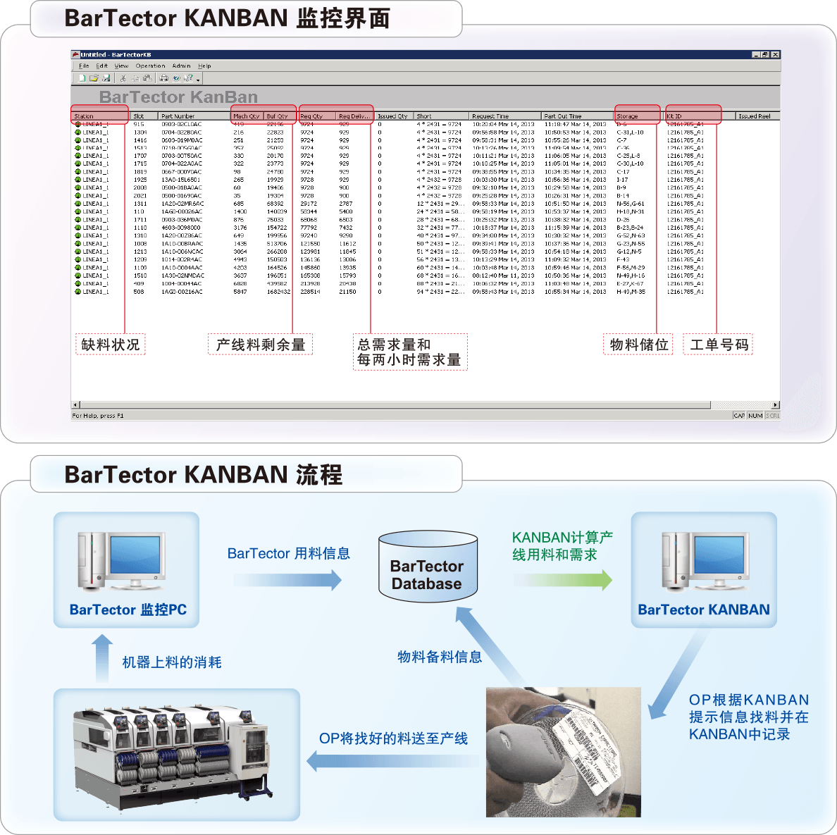 優(yōu)化備料流程,減少人力需求;分批多次送料,減少料件庫存;鎖定物料到產(chǎn)線,杜絕互相移料;實(shí)時(shí)掌控產(chǎn)線用料、缺料,按需備料;