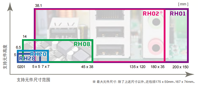 根據要貼裝的元件種類優化貼裝動作,其中包括選擇穩定且合適的貼裝速度以根據元件高度消除Z軸行程的浪費等,這樣除了能靈活應對各種元件外,同時還實現了周期時間的提升