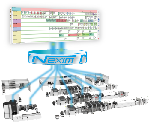 因此我們利用排產工具,將日常生產計劃中涉及到的生產線、自動化設備、操作員能力以及換班時間全部模型化,自動將工單分配到滿足生產條件的生產線,并創建符合生產順序的配置。此外,借由Nexim還能準確計算出生產節拍不同產品的生產時間。如果Nexim跟排產工具搭配使用,那么排產范圍可擴大到物料出庫、線外換線以及搬運時間等具體細節。(圖1)